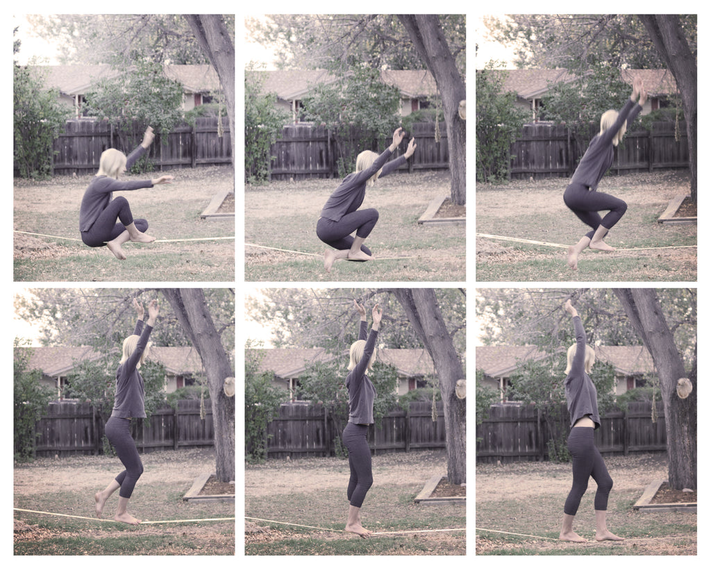 The possibilities on a slackline are nearly endless. Try turning around at the end of the line, or jumping from the ground up onto the line. Walking backward is a fun way to challenge yourself too.
